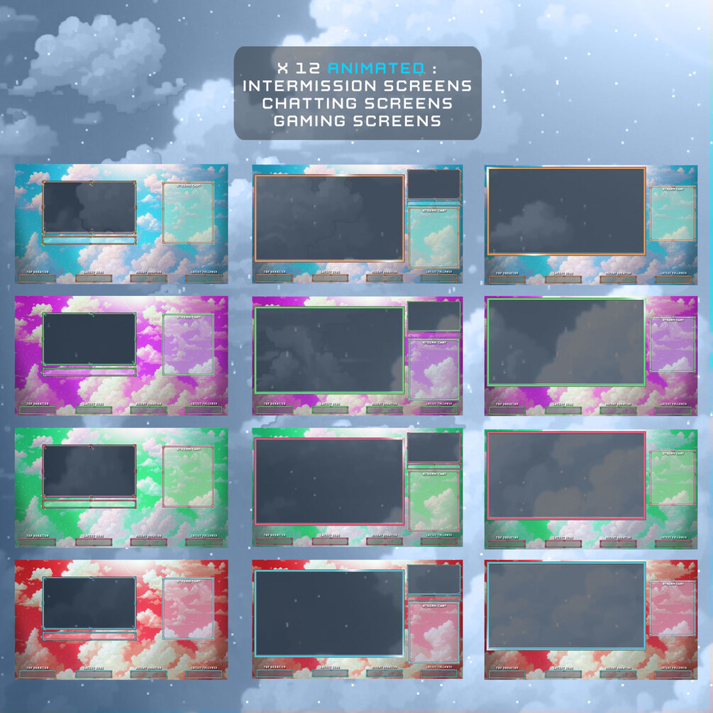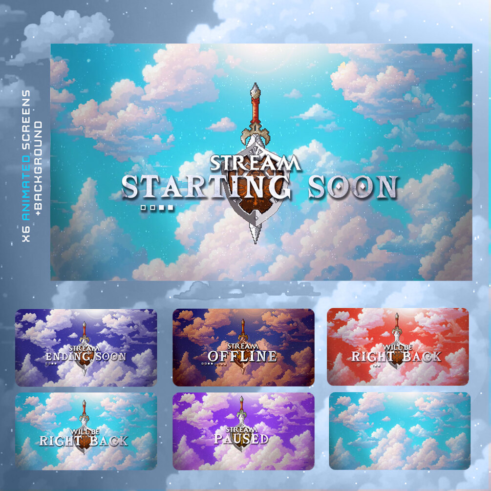 Step into a dreamy world with this animated Fantasy Sky Twitch overlay pack. Designed with pixel art and soft fantasy vibes, this pack is perfect for RPG streamers, chill gamers, and anyone who loves cozy, atmospheric visuals.