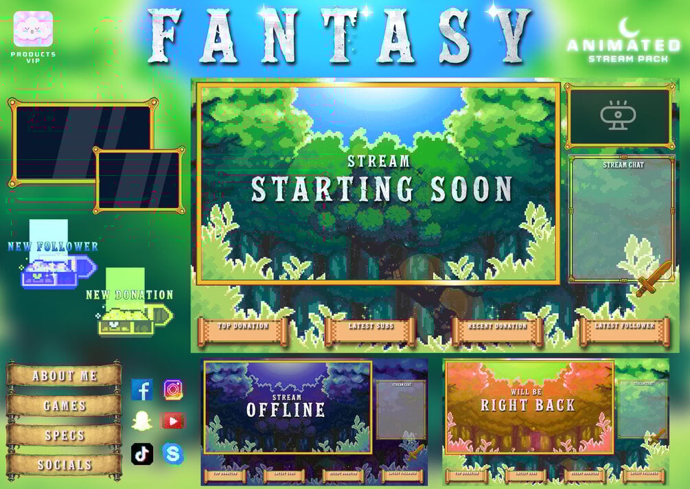 Level up your stream with this premium animated pixel art Twitch overlay pack, designed for RPG lovers and kawaii fans. This bundle blends retro game vibes with cute visuals—perfect for cozy streams, gaming sessions, and fantasy themes.