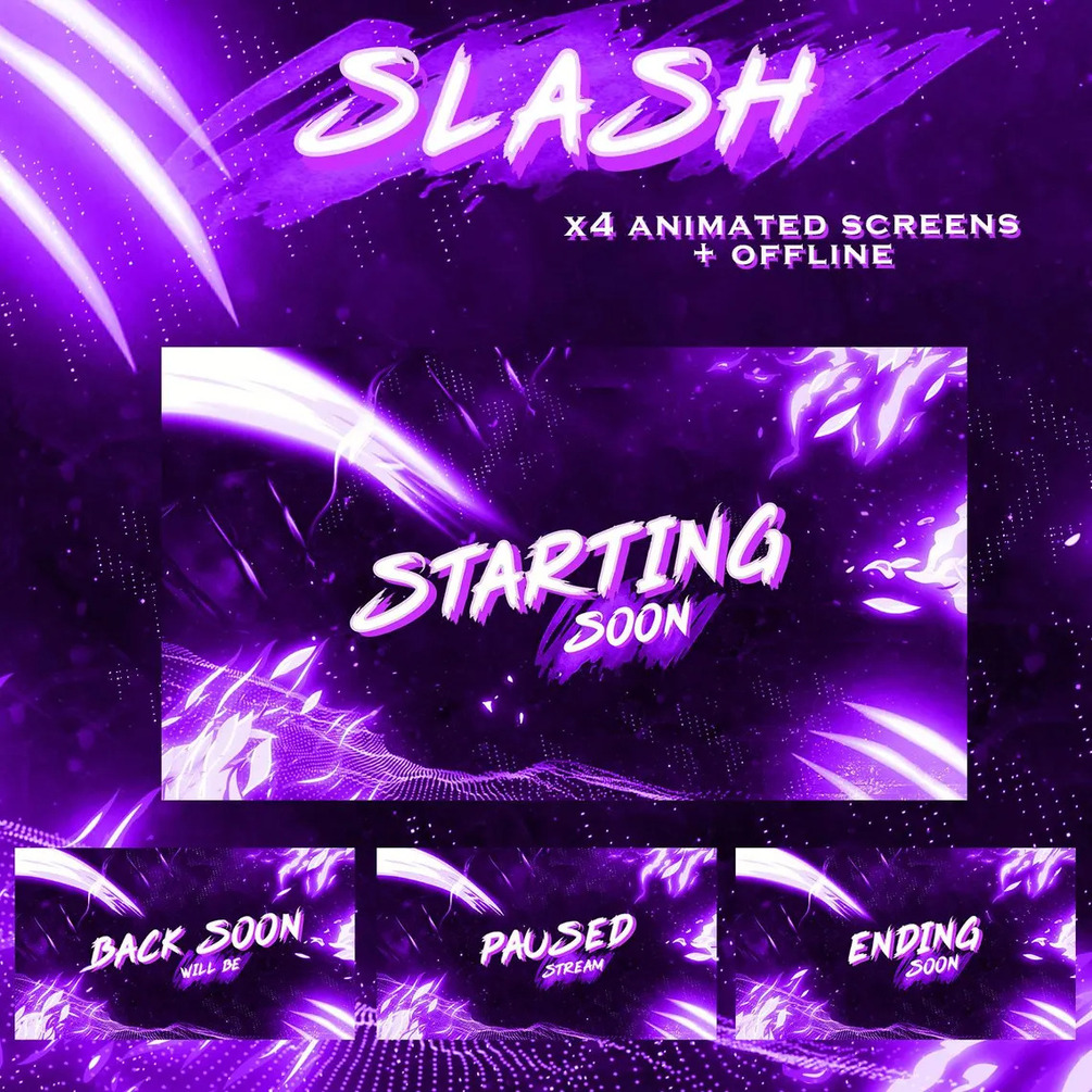 Animated Slash Purple Twitch Overlay Pack | Neon Purple Sparks Full Stream Package | Animated Scenes + Alerts for Twitch, Kick, YouTube