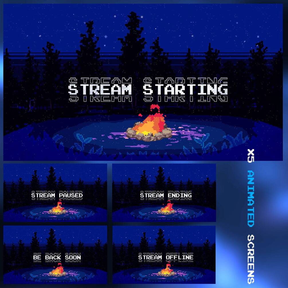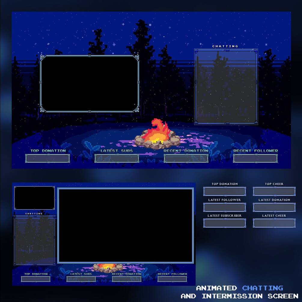 Premium Bonfire RPG Stream Package – Animated Pixel Art Twitch Overlays | Cozy Green Fantasy Twitch Scenes & Alerts for Streamers